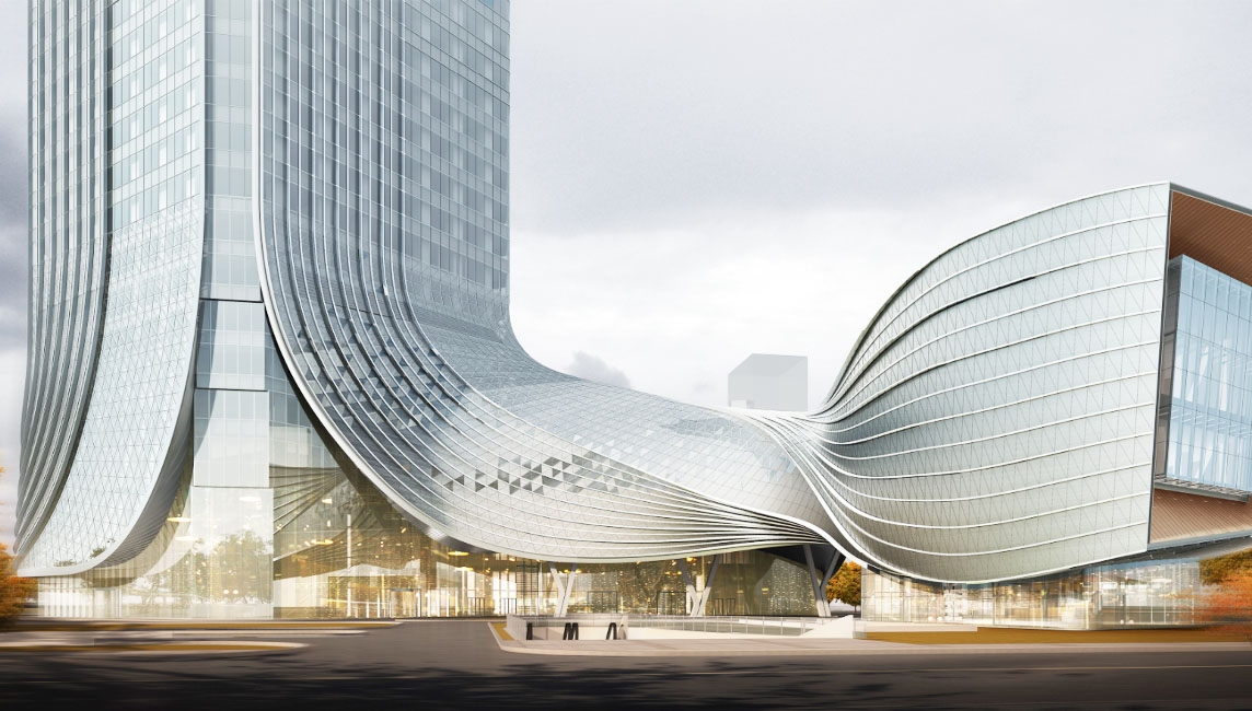 本工程位于珠海十字門中央商務區橫琴片區離岸金融島8號地塊,建筑面積約219220平方米,其中地上建筑面積約138531平方米,地下建筑面積約80689平方米。地上69層、地下4層。主要建設內容為甲級寫字樓、配套會展功能、商務公寓及商業服務設施。該項目取“蛟龍出?!钡脑O計理念,裙樓部分體型尤其洄還扭轉、動感萬千;材料層次多、交錯復雜,設計及施工難度極大。
