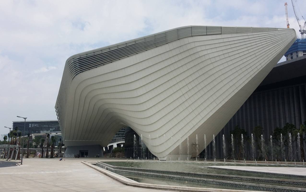 珠橫珠海十字門中央商務(wù)工程是廣東省大橫琴區(qū)開發(fā)的牽頭項(xiàng)目,其中商務(wù)組團(tuán)的入口和城市綢帶項(xiàng)目為整體規(guī)劃項(xiàng)目中的“門戶”項(xiàng)目和最為復(fù)雜的“高難度核心”項(xiàng)目。幕墻面積3萬平米,包含空間多維曲面鋁板、大板塊中空夾膠鋼化玻璃板塊、空間扭曲百葉造型等高技術(shù)含量的項(xiàng)目。另外,該項(xiàng)目設(shè)計(jì)理念為一條風(fēng)中委婉飄逸的綢帶,整體造型隨意無規(guī)律,施工和設(shè)計(jì)中需要大量的計(jì)算機(jī)3D技術(shù)結(jié)合現(xiàn)場數(shù)字測量技術(shù),是既深圳創(chuàng)展中心和九江文化藝術(shù)中心之后,晶藝公司又一空間異形建筑工程力作。該項(xiàng)目在該片區(qū)在眾多工程中被同行業(yè)和其他相關(guān)方公認(rèn)為技術(shù)要求最難、最復(fù)雜但完效果最好且最先施工完畢的項(xiàng)目。